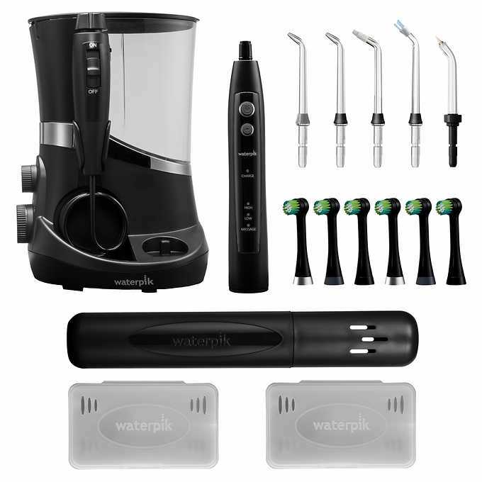 - Includes: Waterpik Water Flosser, Triple Clean Oscillating Toothbrush, 5 Accessory Tips, 2 Tip Storage Cases, 6 Replacement Brush Heads & 1 Premium Toothbrush Travel Case